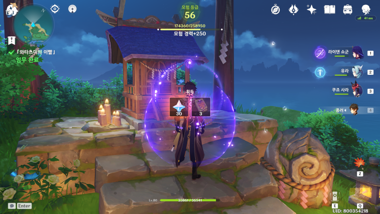 원석 30개 경험치책 3개를 얻어줍니다