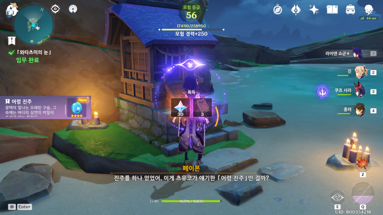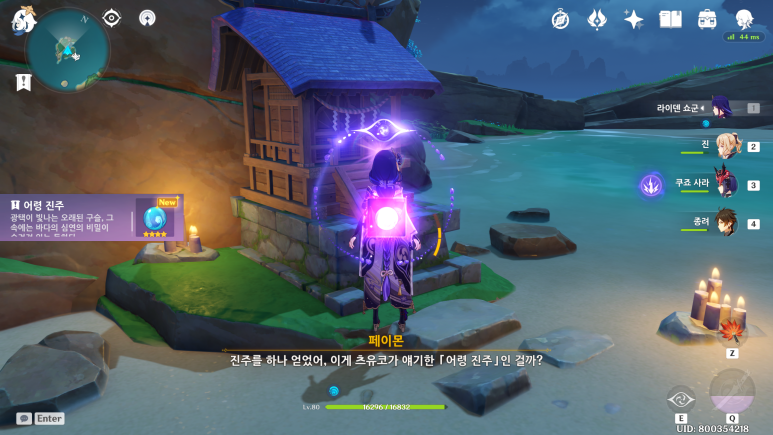 상호작용을 해서 어령진주를 얻을수 있고