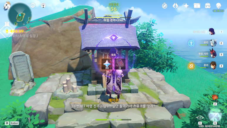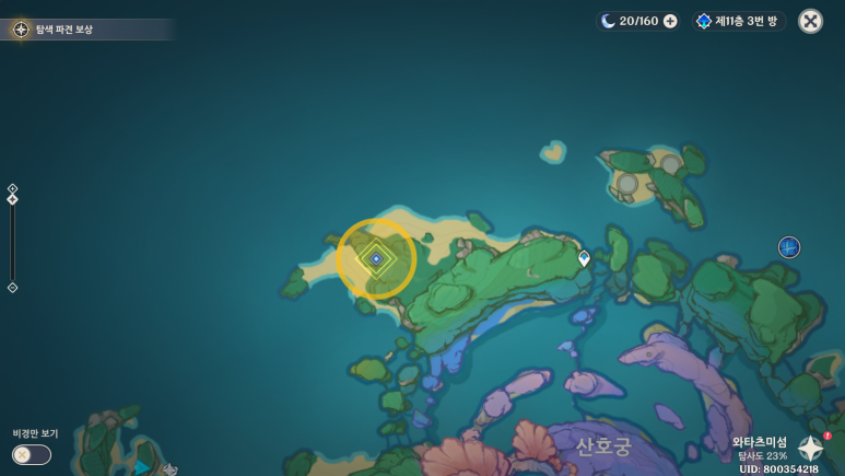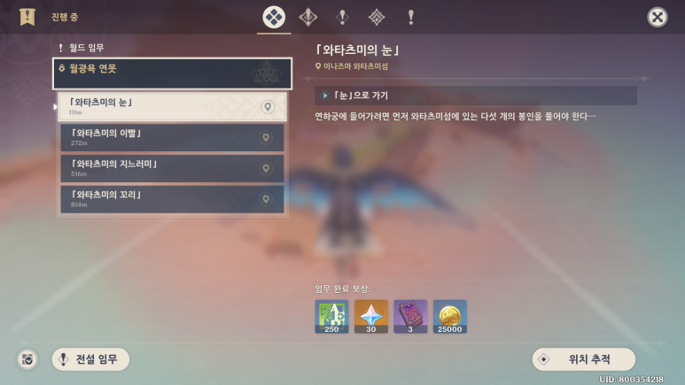 그 다음퀘는 와타츠미의 이빨로 지도의 위치에 있습니다