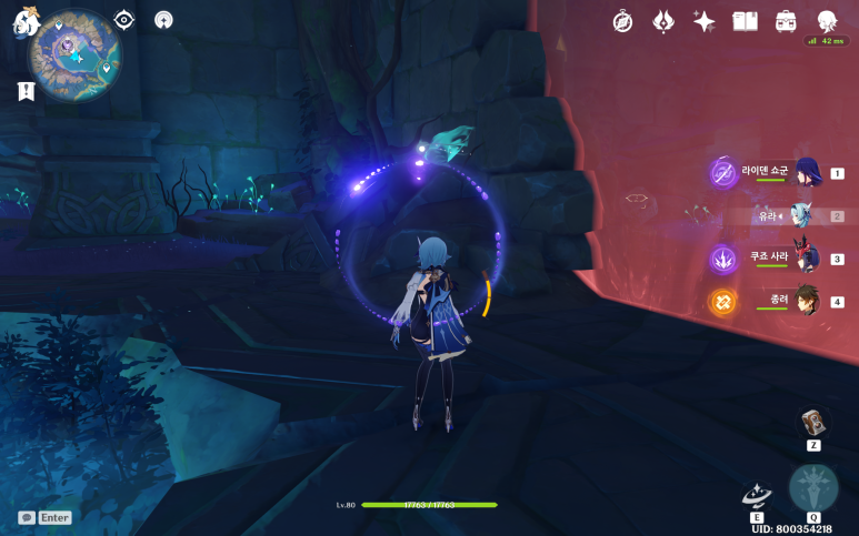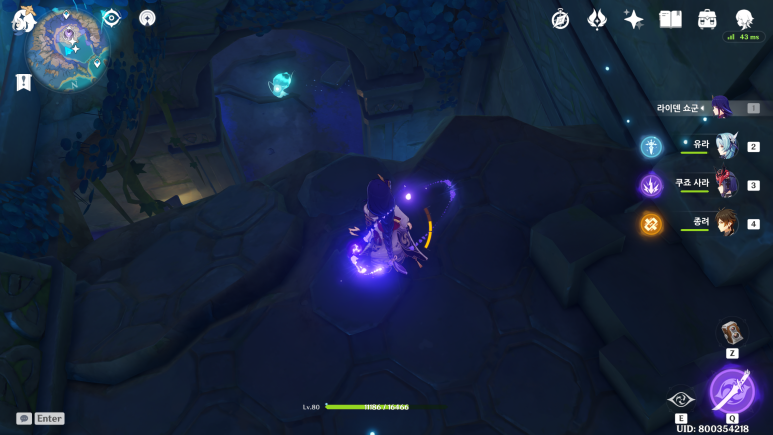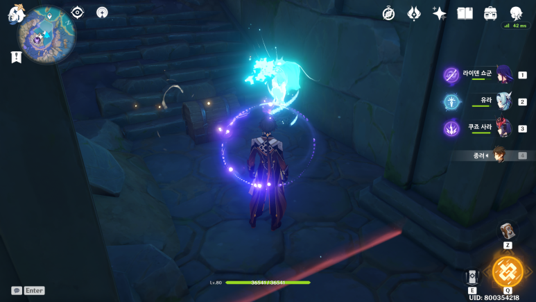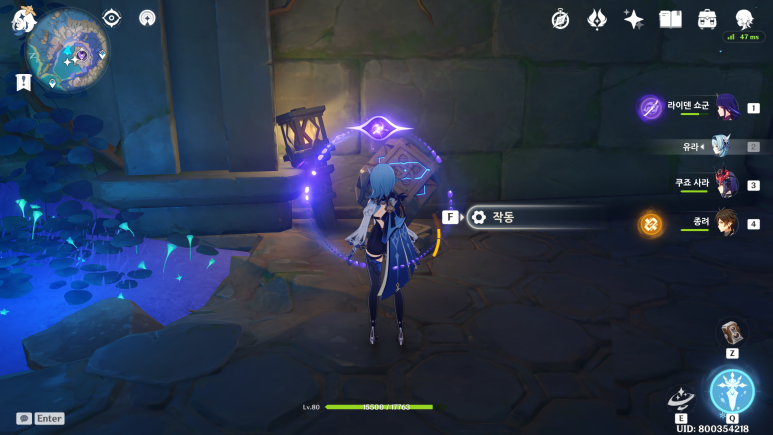 안쪽에 들어가면 파란색 결계 장치가 있는데 활성화 시켜 줍니다