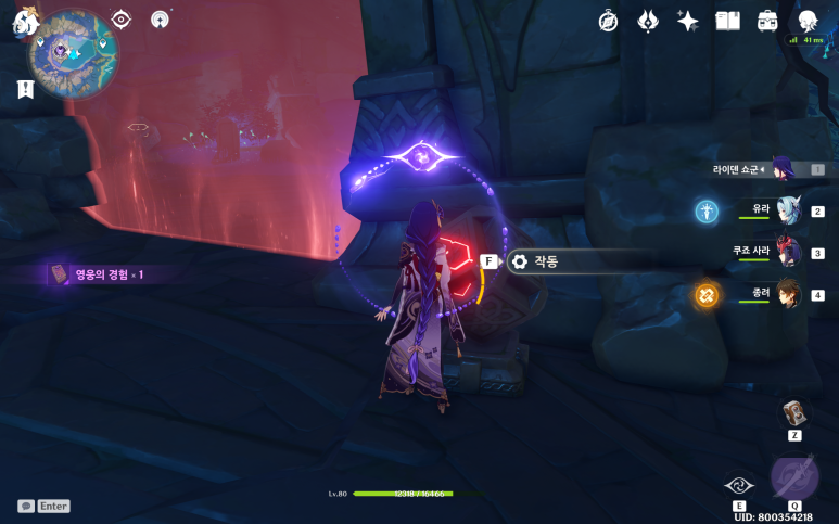 옆의 장치를 작동시켜서 결계를 해제하고 들어가 줍니다